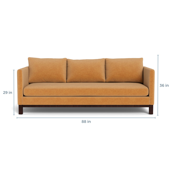 - Dimensions 88" W x 38" D x 36" H | Seat Height: 18" H | Seat Depth: 23" D | Back/Arm Height: 29" H