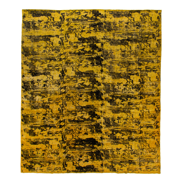 A 12' by 14' yellow overdyed wool rug offers more than just a place for your feet to land; it commands attention with its striking visual presence. The luxurious yellow base, with its meticulously overdyed texture, reveals a distressed pattern in deep black, bringing a modern yet richly vintage ambiance to any space. Each rug emerges as a singular piece of art, where vibrant yellow dances with bold black, creating an abstract landscape that elevates the entire mood of a...