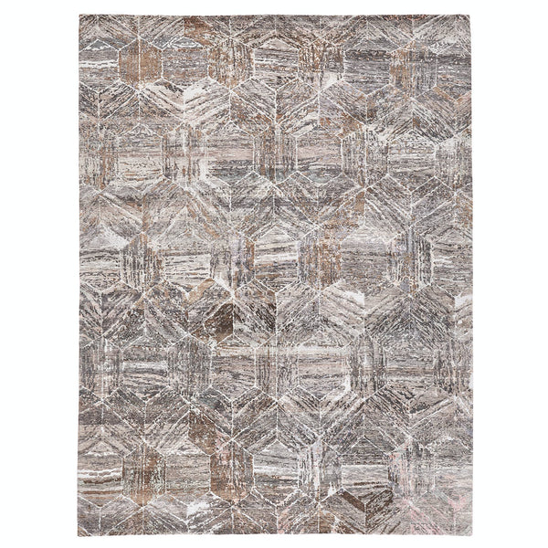 Grey & Brown Nu Vibrant Geometric Modern Tibetan Wool Rug - 9' x 12