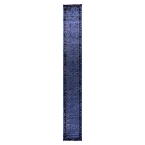 This Purple Overdyed Wool Runner measures 2 feet 8 inches by 19 feet 10 inches, making it suitable for extended pathways and long corridors. Crafted from durable wool, this runner features a distinct purple hue achieved through the overdying process. This technique involves repurposing vintage or semi-antique rugs by neutralizing their original colors and then redyeing them in a new, solid shade. The result is a rug that retains the texture and subtle ghosting of its original patterns while presenting...