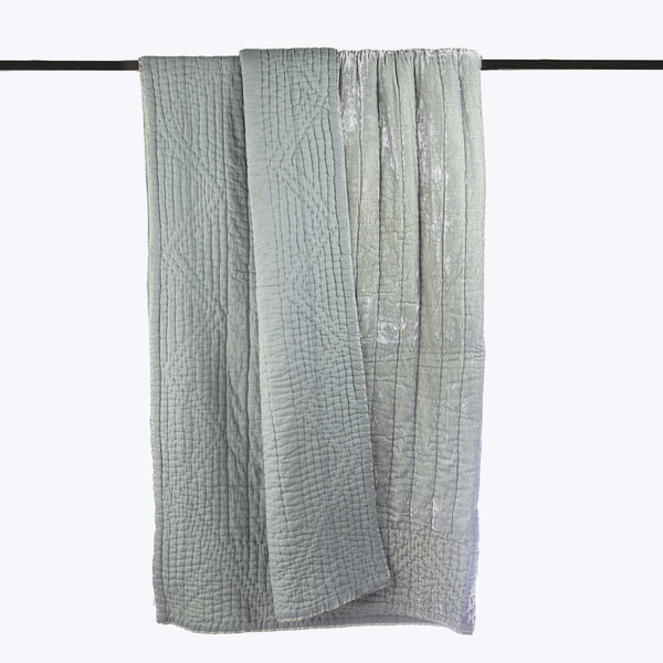 Exclusively at abc, this Quilted Throw in perfect blue is created using rich silk velvet with a soft cotton backing and intricate running stitch design. Made for sacred spaces, providing the ideal refuge for reflection, comfort, and warmth. Filled with cotton.
