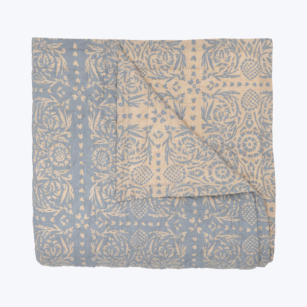 Discover the Raasia Woven Quilt by John Robshaw. Hand-quilted on super soft cotton slub chambray, this reversible quilt’s whimsical pattern was inspired by antique painted tilework from Portugal. Available in Twin/Twin XL, Queen, and King. Style with the Raasia Woven Quilted Sham.