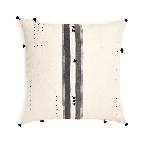 The Rebari Handspun Pillow, sized at 24" x 24", is a timeless accent that brings understated elegance to any space. Crafted from 100% cotton khadi, a premium material sourced from India, this pillow features a serene off-white base adorned with subtle, dark gray stripes. The handspun nature of the fabric adds a sense of artisanal quality, offering both texture and refinement.This pillow exemplifies traditional craftsmanship while providing a luxurious touch to your home decor. Its minimalist design is perfect for...