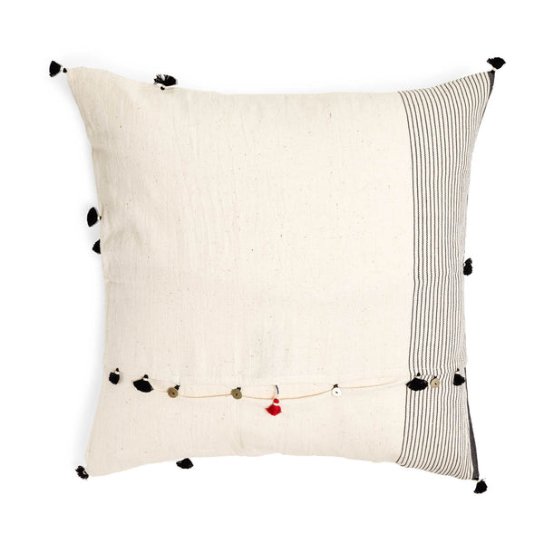 The Rebari Handspun Pillow, sized at 24" x 24", is a timeless accent that brings understated elegance to any space. Crafted from 100% cotton khadi, a premium material sourced from India, this pillow features a serene off-white base adorned with subtle, dark gray stripes. The handspun nature of the fabric adds a sense of artisanal quality, offering both texture and refinement.This pillow exemplifies traditional craftsmanship while providing a luxurious touch to your home decor. Its minimalist design is perfect for...