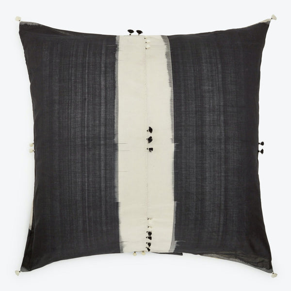 Handwoven on a traditional loom in India. Named for both the colloquial pronunciation of the word 'India' and the historical term for southern India's checkered textiles, also known as madras. A button closure and tassels add playfulness. Available in different sizes and patterns.