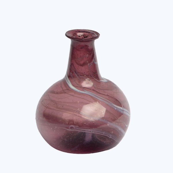This Recycled Glass Vase is a bulbous shape that is a work of art with its unique shape and marbled effect. A beautiful accent to your tablescape, bedside table, or a place in need of an extra touch of florals and color. Due to the handmade and recycled nature of this colored glass vase, each one is unique and one-of-a-kind.