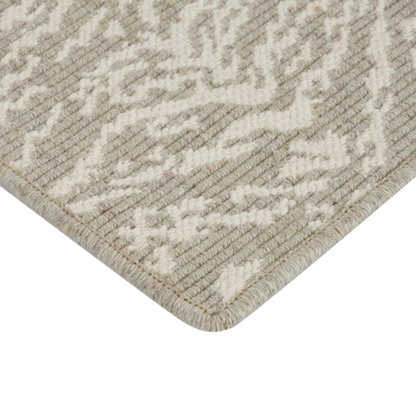 This 1' x 1' Regency Tiger Swatch provides a representative sample of custom-sized carpeting. The swatch features an Onyx black base color, intricately patterned with an off-white, abstract design reminiscent of tiger stripes. This creates a textured and visually engaging surface suitable for various interior applications. The carpet material is a blend of 40% wool and 60% polyester. This composition combines the natural resilience and soft feel of wool with the enhanced durability and stain resistance of polyester. The construction...