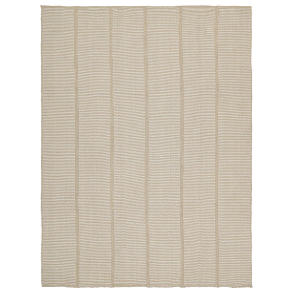 Handwoven from durable wool, this Contemporary Striped Kilim - 9'3" x 12'3" offers a modern take on classic panel weaving. This contemporary kilim rug showcases neutral off-white and beige stripes that live beautifully in the rich wool texture. The unique lightweight flatweave construction offers more durability than other handmade kilims of this size and sensibility. An heirloom-worthy piece, this kilim rug is an effortless way to introduce sophisticated geometrics, minimalist color, and storied wisdom into a styled space, both modern...