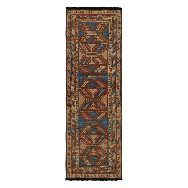Displaying some of the most important patterns in the history of rug making, this Tribal Style Rug - 3'3" x 10'4" marries high fashion with unsung traditional appeal. Hand-knotted from soft Ghazni wool, this one-of-a-kind runner rug is filled with rich beige-brown hues melded with highlights of red and blue through its intricate geometric patterns. Finished with an eye-catching black fringe, this tribal rug is the perfect example of refined sensibilities and traditional oriental grace.