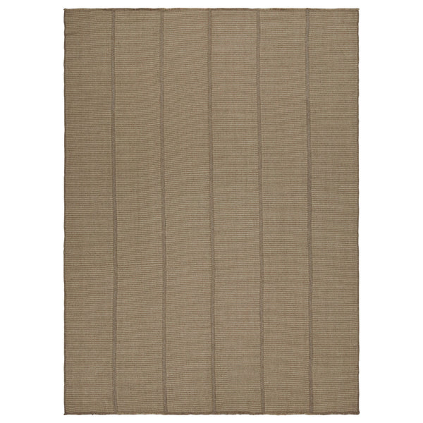 Handwoven from durable wool, this Contemporary Striped Kilim Rug - 10'2 x 13'9" offers a modern take on classic panel weaving. This contemporary kilim rug showcases neutral beige and tan brown stripes that live beautifully in the rich wool texture. The unique lightweight flatweave construction offers more durability than other handmade kilims of this size and sensibility. An heirloom-worthy piece, this kilim rug is an effortless way to introduce sophisticated geometrics, minimalist color, and storied wisdom into a styled space,...