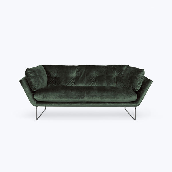 Retro elegance collides with futuristic Italian design. At once modern and timeless, the low-slung hexagonal shape of this NY Suite Velvet Sofa rests on a black nickel steel frame with cushions styled in a removable slipcover made of sumptuous textured velvet. Its tidy 75" width makes this sofa a conserver of space in studio or one-bedroom apartments. Complete with a removable slipcover for easy cleaning or changing up your look, this piece makes light work of entertaining and hosting your...