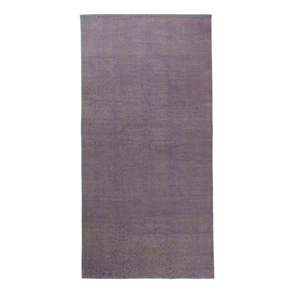 A shimmering masterpiece, this purple transitional silk rug stands at 7 feet 9 inches wide by 10 feet long, promising to transform any space it graces. Crafted with meticulous care from the finest silk, it offers a tactile luxury—a softness underfoot paired with the glinting allure of its natural sheen. The light dances across its surface, enriching the depth of its purple hues with every glance. Its pattern is a whisper, a subtle ghost-like dance in shades of purple interwoven...