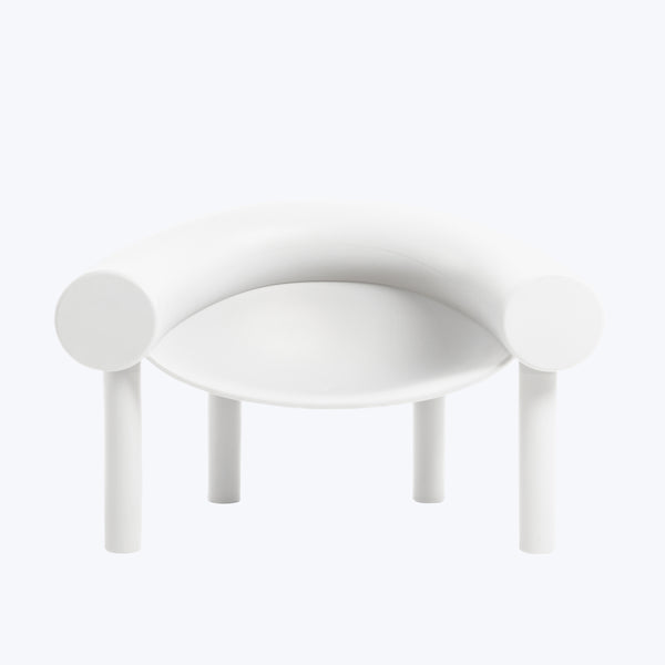 The Sam Son Low Chair by Magis is a bold and playful piece crafted in Italy by the renowned contemporary furniture manufacturer. Supported on four stilt legs, this armchair features an exaggerated armrest and backrest, as well as a softly suspended seat shell. The solid color palette emphasizes this modern marvel’s standout quality. Available in White and Curry. Suitable for indoor use.