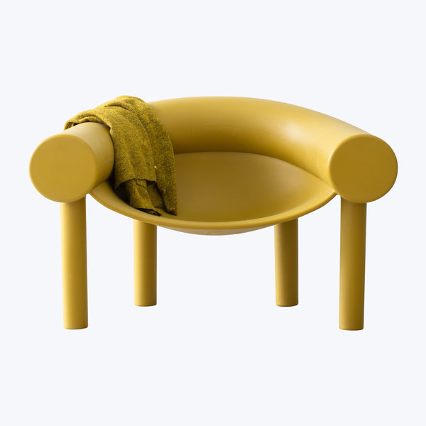 The Sam Son Low Chair by Magis is a bold and playful piece crafted in Italy by the renowned contemporary furniture manufacturer. Supported on four stilt legs, this armchair features an exaggerated armrest and backrest, as well as a softly suspended seat shell. The solid color palette emphasizes this modern marvel’s standout quality. Available in White and Curry. Suitable for indoor use.