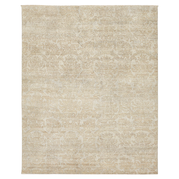 This Beige Overdyed Rug stands as a testament to both artistry and utility. Measuring a substantial 9' 9" by 7' 10", it's not merely a rug; it’s the silent foundation that supports and elevates the entire room. Composed of pure, high-caliber wool, the texture beneath bare feet is a gentle reminder of luxury. Its durability is not just promised, but proven, making it an ideal companion for lively living rooms and bustling dining spaces alike. Hand-knotted with care in Pakistan,...