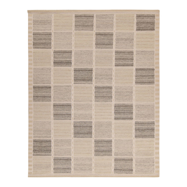 Casual yet striking, a striated palette of cream & grey hues voices a modern checkerboard design in this Swedish-style flatweave rug handwoven from wool. The clever spirit of minimalist design is delicately expressed in our collection of handwoven Swedish-style flatweave rugs. Soothing palettes of soft faded hues voice the midcentury modern inspired design — composing light & versatile pieces handwoven for all types of interior spaces.