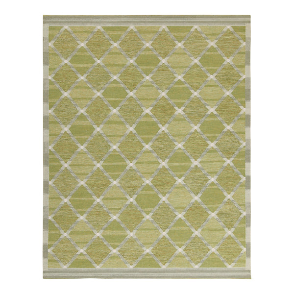 A soothing spectrum of sage hues voice the subtle yet complex latticework in this Swedish-style flatweave rug handwoven from natural cotton.The clever spirit of minimalist design is delicately expressed in our collection of handwoven Swedish-style flatweave rugs. Soothing palettes of soft faded hues voice the midcentury modern inspired design — composing light & versatile pieces handwoven for all types of interior spaces.