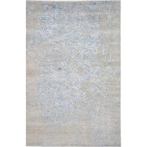 A modern rug measuring 3'9" x 5'9" becomes a statement of understated elegance, crafted in India. The allure lies in the blend—75% bamboo-extruded silk-like fiber and 25% New Zealand wool. The bamboo fiber whispers luxury with its gentle sheen and silk-like softness, while New Zealand wool brings resilience and warmth, a tactile harmony. Its design, a dance of abstract blue against a light backdrop, mimics faded brushstrokes, suggesting nature’s organic artistry. The pattern unfolds in a play of light and...