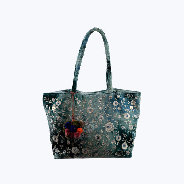 Discover Anke Drechsel’s Silk Velvet Tote. Crafted in stunning silk velvet with hand-embroidered flowers, this exquisite tote is made in Germany by Drechsel’s master craftsmen. The tote features side snaps and a fully lined interior. Available in 3 vibrant shades.