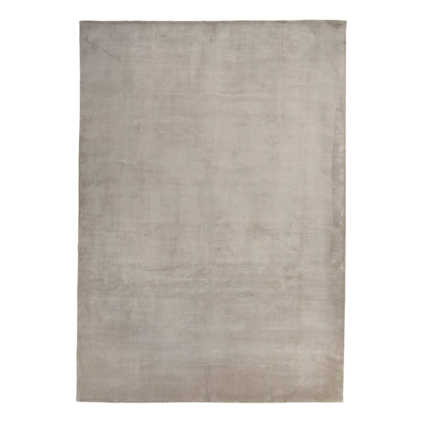 The Silver Tibetan Solid Silk rug measures 10' x 14' and originates from Nepal. Hand Knotted out of luxurious silk, this minimalist piece features a uniform gray color with a subtle texture that adds depth to modern interiors. A high-quality, contemporary addition to any space.