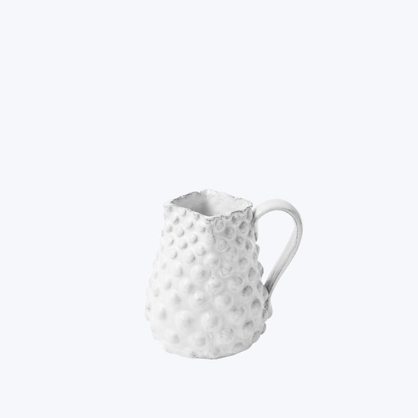 A uniform trim of raised dots brings a touch of whimsy to this small Adelaide pitcher from Astier de Villatte. Hand molded from black terracotta, each piece from Astier de Villatte is finished in a milky-white glaze that highlights the unique character of the clay, celebrating its imperfections and ensuring that no two pieces are exactly alike. Romantically bohemian, yet practical for everyday use, this piece is made in an antique Bastille workshop, historically home to Napoleon Bonaparte's silversmith.