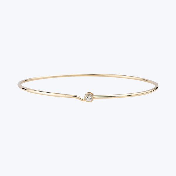 Add delicate beauty to your wrist with the Small Diamond Full Circle Wire Bangle by Lee Jones. Crafted in slender 14K gold, this elegant bangle features a small, bezel-set diamond. Wear it alongside the Large Diamond Full Circle Wire Bangle. Made in the USA.