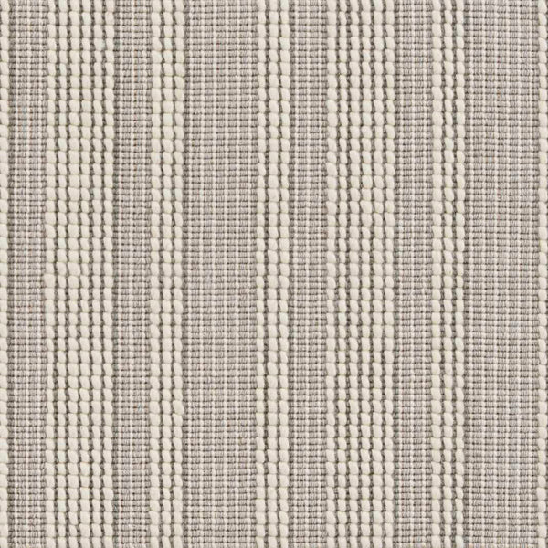 The Solara Swatch is a custom-sized carpet, designed primarily for evaluating texture, color, and material composition. This 1-foot by 1-foot square offers a precise representation of the larger product line. This carpet features a striped pattern in a sophisticated Lilac color palette. The design incorporates alternating bands of distinct textures. One stripe displays a tighter, low-pile weave in a light grey tone. The adjacent stripe exhibits a more prominent, textured loop pile. This raised element combines off-white and soft beige...