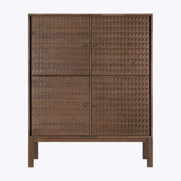 Ethnicraft’s Sono Cupboard offers a beautiful blend of exquisite design and practical function. This stunning piece is crafted in varnished teak and features hand-carved panels adorned with delicate casted brass handles. An eye-catching addition to any room, this decorative cupboard also boasts ample interior storage.