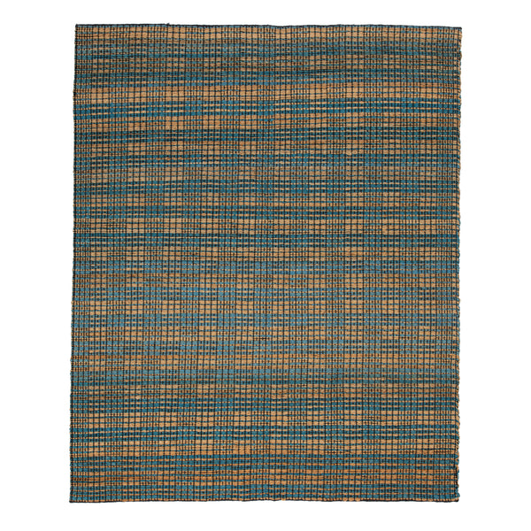 This Blue and Brown Transitional Soumak Jute Rug - 7'10" x 10'4" is a hand-woven piece from India. Featuring textured and durable jute in a blue and beige checkered pattern, this rug is both durable and unique.