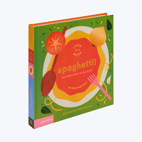 Spaghetti! by Phaidon teaches little ones how to cook pasta without the mess. Utilizing playful features like pull-tabs, flaps, and a punch-out fork, this interactive recipe book is the perfect gateway to independence in the kitchen.