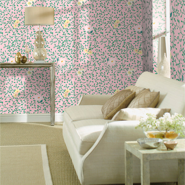 Bring botanical beauty to your walls with Yuki Osada’s Springtime Garden wallpaper. Featuring swirling vines set against a pastel backdrop, this elegant wallpaper has a maximalist feel perfect for elevating small spaces. Available in Spring Green and Spring Pink. Yuki Osada is a celebrated CAD designer, graphic artist, and illustrator known for her playful prints.