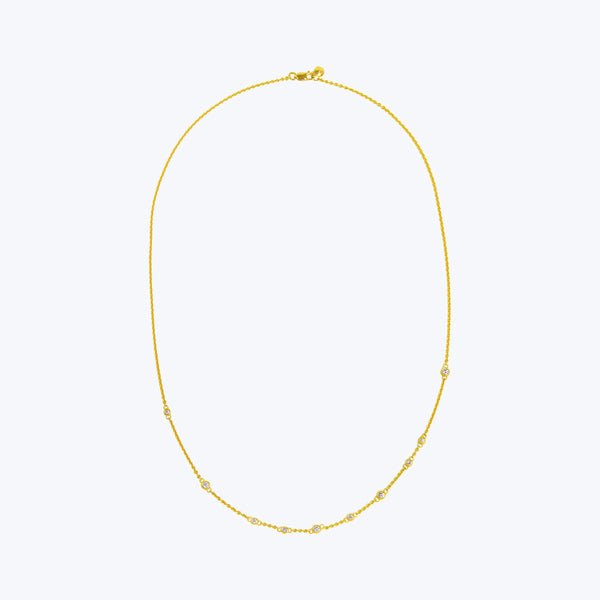 The Sprinkle Necklace is crafted from 18K yellow gold with a total of 0.25ct diamonds sprinkled across the chain. Chain measures 15" in length.