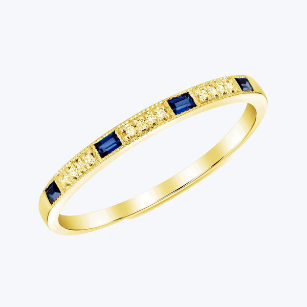 The Stacking Sapphire Diamond Ring is filled with inconspicuous elegance. This pave band ring with 18k gold, sapphires, and diamonds is a symbol of harmony, faithfulness, and loyalty. Beautiful on its own or stacked with other rings. Ele Keats fine jewelry is mindfully crafted from ethical stones in Los Angeles, California.