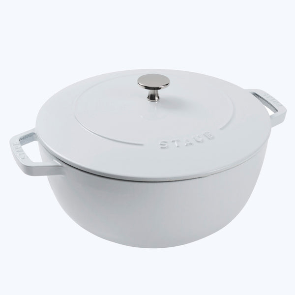 The Staub cocotte is unsurpassed for slow-cooking meats and vegetables to tender perfection, and for simmering hearty stews and soups. Cast iron possesses exceptional heat-retaining qualities, so the pot heats evenly throughout. The innovative lid features tiny spikes on the interior that continually release condensed liquid back onto the food, yielding moist, flavorful results.Staub's special matte black enamel interior and self-basting spiked lid guarantee perfect browning and braising for flavor-enhanced food. With their exquisite enamel finish, each piece transitions beautifully...