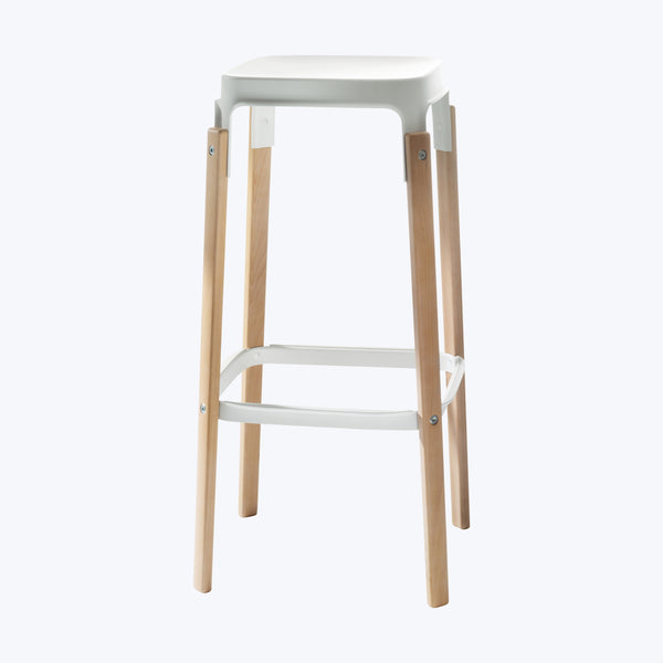 The Steelwood Stool by Magis features a beautiful combination of two traditional materials: wood and steel plate. Crafted in Italy by the renowned Italian furniture maker, this contemporary design piece is both elegant and adaptable—an easy addition to a small, cozy space. Available in white and solid beech wood.