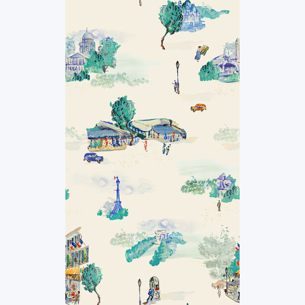 Bring elevated whimsy to your walls with Yuki Osada’s Streets of Paris. Crafted on watercolor paper, this charming wallpaper features a playful interpretation of Paris’s landmarks and signature sights. Perfect for a powder room or children’s bedroom. Yuki Osada is a celebrated CAD designer, graphic artist, and illustrator known for her fun-infused prints.