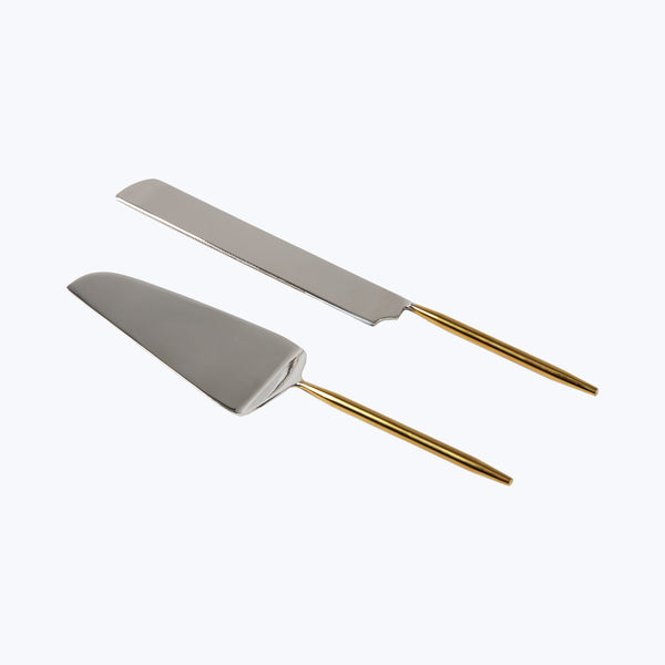 Whether you're serving up a decadent wedding cake or a casual birthday party dessert, the Sun & Moon Cake Lift Set adds a touch of sophistication and refinement to your table setting. Handcrafted in India and forged with a PVD finish, this set is an elegant must-have.