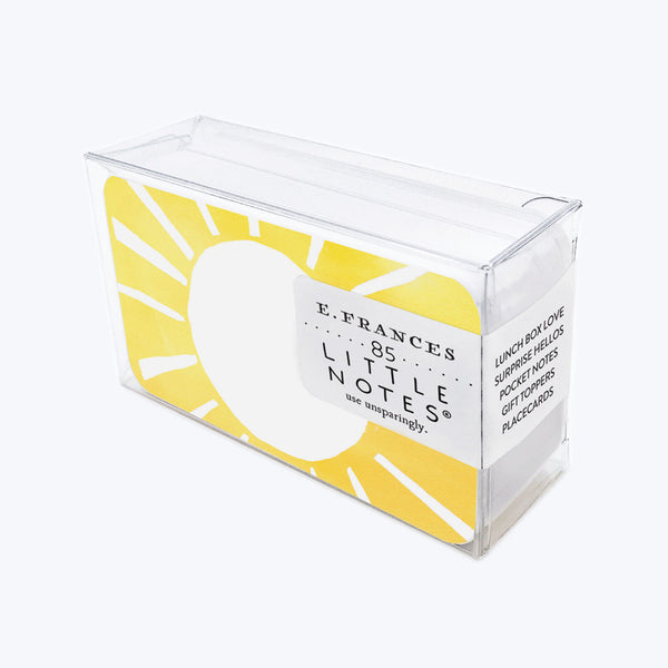 A simple and sunny way to help brighten their day. Little Notes include 85 sweet little notecards, cozily boxed together for you to use unsparingly. Perfect to use as lunch box notes, gift toppers, place cards, gentle reminders and a million and one more uses. Made in the USA, each E.Frances card begins as an original watercolor painting that is then printed in brilliant color.