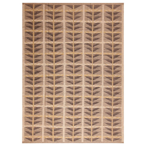 Brown Geometric Swedish Style Wool Kilim Rug - 9' x 12'