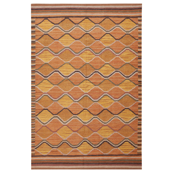 Orange Geometric Swedish Style Wool Kilim Rug - 6'3" x 9'4"