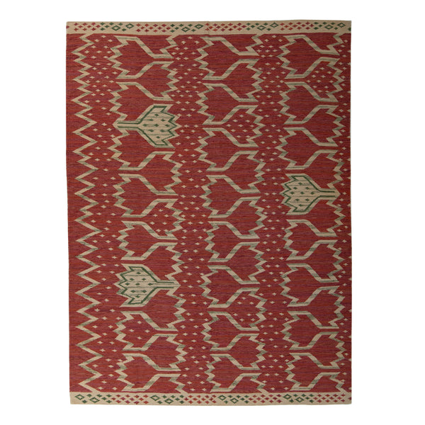 Red Geometric Swedish Inspired Kilim - 8'1" x 10'9"
