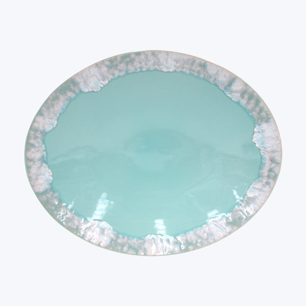 Discover the artisanal beauty of COSTA NOVA’s Taormina 16" Oval Platter. Designed exclusively for abc, this exquisite platter features a stunning reactive glaze with contrasting borders. Crafted in fine stoneware by expert Portuguese artisans. Available in Aqua and White.