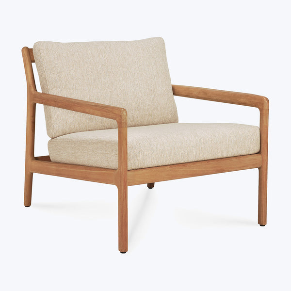 The Teak Jack Outdoor Lounge Chair seamlessly combines sculptural elegance with modern outdoor functionality. Measuring 30" W x 29.5" H x 35.5" D with a 16" seat height, this Ethnicraft lounge chair is crafted from solid teak and features quick-dry foam cushions upholstered in premium Belgian fabric. Its clean, classic lines are complemented by the chair’s soft curves, creating an inviting silhouette that exudes sophistication from every angle.Designed and crafted in Indonesia, the Teak Jack Outdoor Lounge Chair is built...