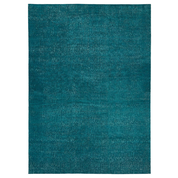 A statement piece that commands attention, this blue overdyed wool rug transforms any expansive room into a canvas of sophisticated charm. With its generous proportions of 14'2" by 20'1", it becomes a grounding centerpiece in living areas where grandeur meets style, adding depth to formal dining spaces or bringing a sense of opulence to bedrooms. The rug's rich teal hue, achieved through a meticulous overdyed process, juxtaposes vibrant energy with a subtle, distressed patina. This alchemy between bold color and...