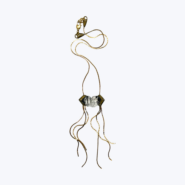 The Ama Necklace is made of hand-sculpted epoxy with gold dust and Herkimer diamond quartz from Kashmir that is finished with a protective resin coating on a vintage, nickel-free brass and gold fused chains. Herkimer diamond holds powerful energy and is used for connection and attuning to other people or environments. This diamond quartz necklace brings balance and harmony and can help heal emotional and physical ailments.Elena Lyakir is an NYC-based contemporary metaphysical jewelry artist by way of Ukraine. Her...