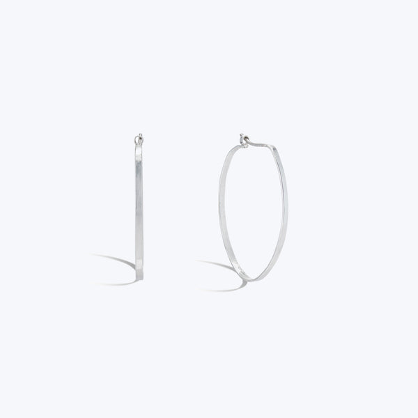 The Elsa Hoops are hammered by hand to create a flat and oval-shaped earring for a dynamic look that is perfect for everyday wear and elevated occasions. Made from recycled 14-karat gold or sterling silver in a variety of sizes. Sarah Macfadden is an NYC-based jewelry designer who is inspired by nature and utilizes the raw beauty of sterling silver and gold to forge metals into organically shaped necklaces, earrings, bracelets, and rings. Each piece is handmade and one-of-a-kind, exemplifying...