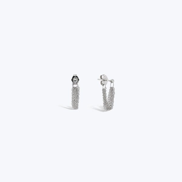 The 8 delicate chains of the Olivia Earrings join together to move and catch the light. Each tassel length is 1" as they wrap under and around the earlobe, connecting to the post in the back. The softness of the chains makes these earrings comfortable to wear every day. Available in recycled 14K gold, sterling silver, and oxidized silver. Sarah Macfadden is an NYC-based jewelry designer who is inspired by nature and utilizes the raw beauty of sterling silver and...