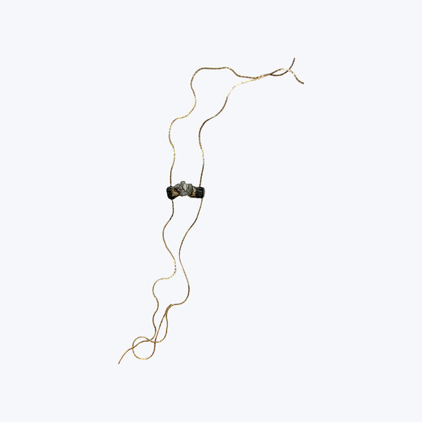 The Opulent Necklace is made of hand-sculpted epoxy with gold dust and pyrite cluster from Spain that is finished with a protective resin coating on a vintage gold fused chain. This rare stone is also used for protection, willpower, and self-esteem. Elena Lyakir is an NYC-based contemporary metaphysical jewelry artist by way of Ukraine. Her mystical influence is translated into wearable art through the creation of her chic line of statement jewelry that's bold, unique, and crafted by hand from...