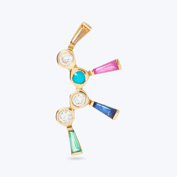 MaterialSolid 14k gold, White diamonds (Total: ~0.15 cts each), Emerald, Blue sapphire, Pink sapphire, Peach sapphire
