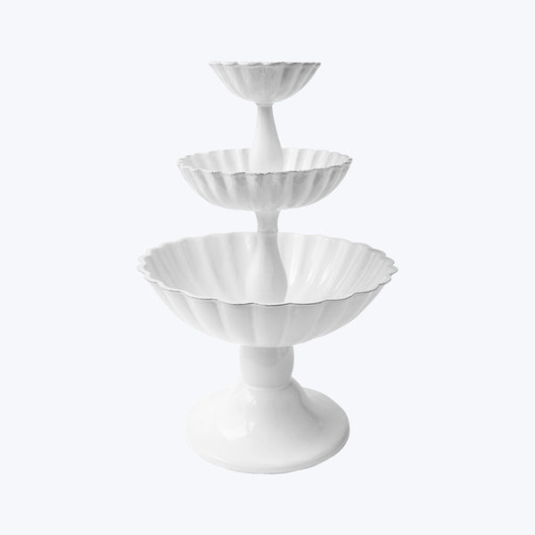 Hand molded from black terracotta, each piece is finished in a milky-white glaze that highlights the unique character of the clay, celebrating its imperfections and ensuring that no two pieces are exactly alike. Romantically bohemian, yet practical for everyday use, these pieces are made in an antique Bastille workshop, historically home to Napoleon Bonaparte's own silversmith.